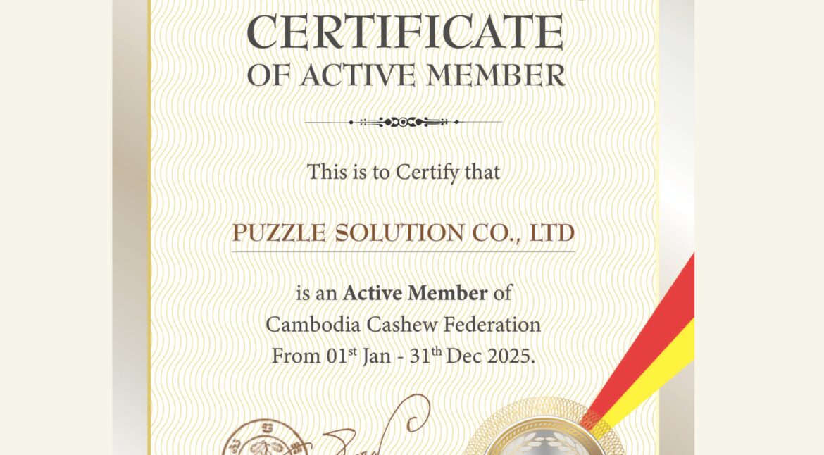 We are pleased to announce that Puzzle Solution Co., Ltd. has become an Active Member of the Cambodia Cashew Federation…